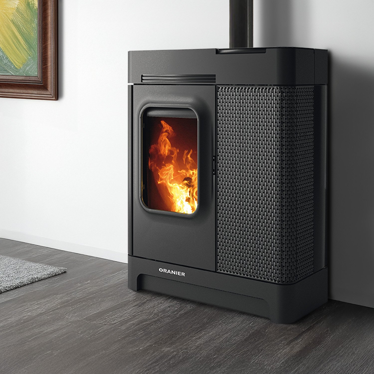 Oranier Calimo XL Pelletofen Schwarz – 8 kW, WiFi smartCon, automatische Brennerschalen-Reinigung