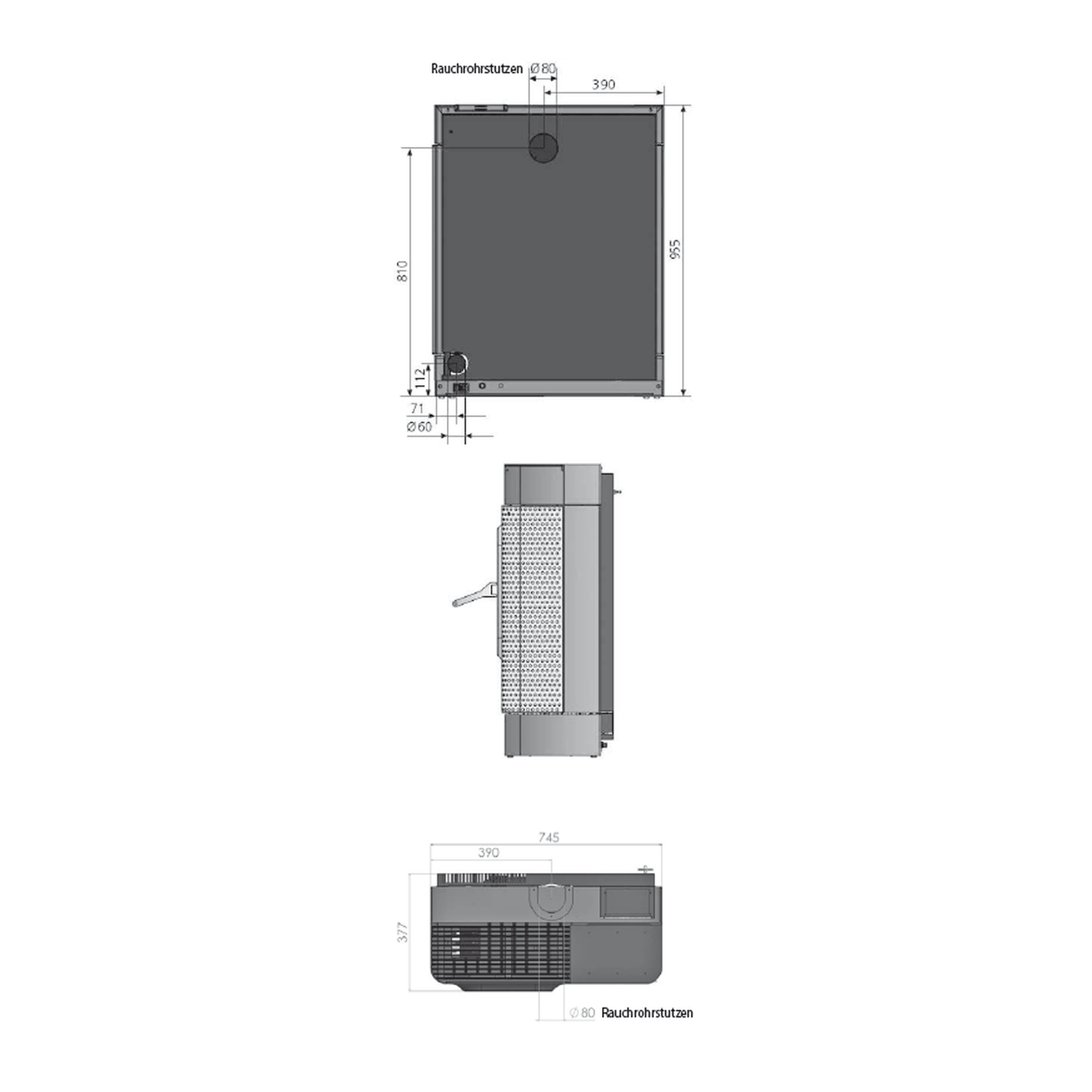Rauchrohranschluss: hinten/oben, Ø 80 mm