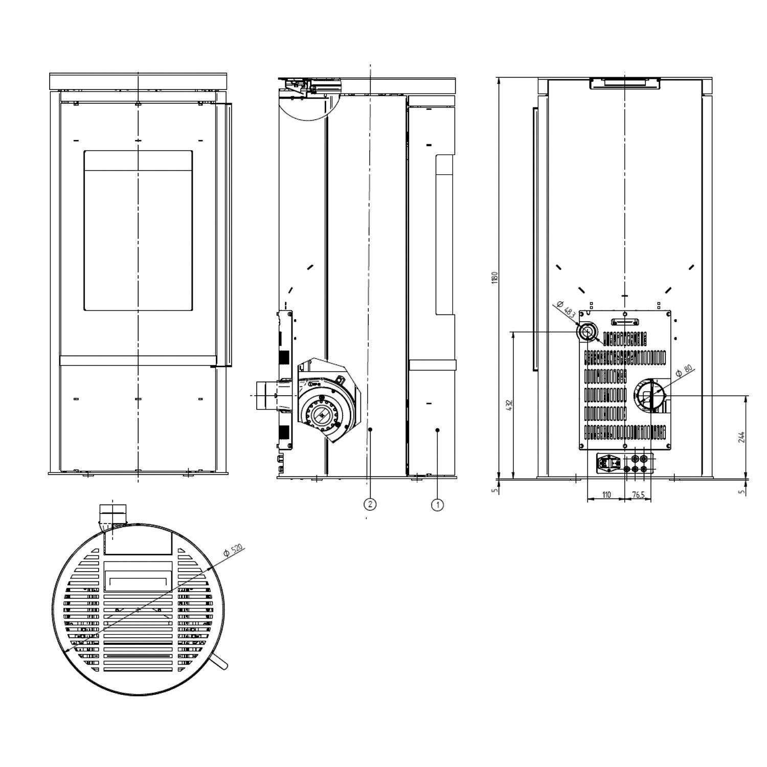 Rauchrohranschluss: Ø 80 mm (hinten)