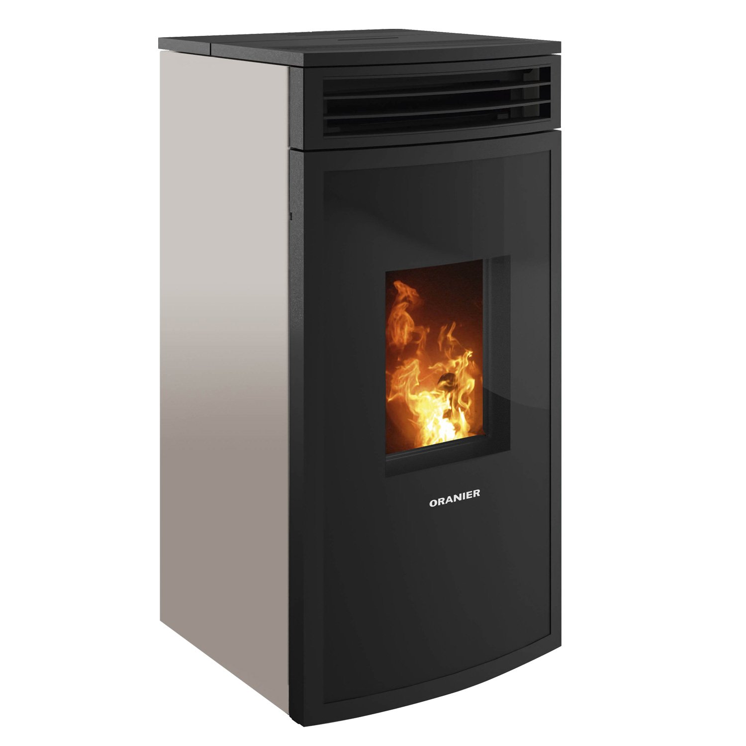 Oranier Neta Pelletofen Taupe – 8 kW effizienter Design-Pelletofen mit hinterem Anschluss