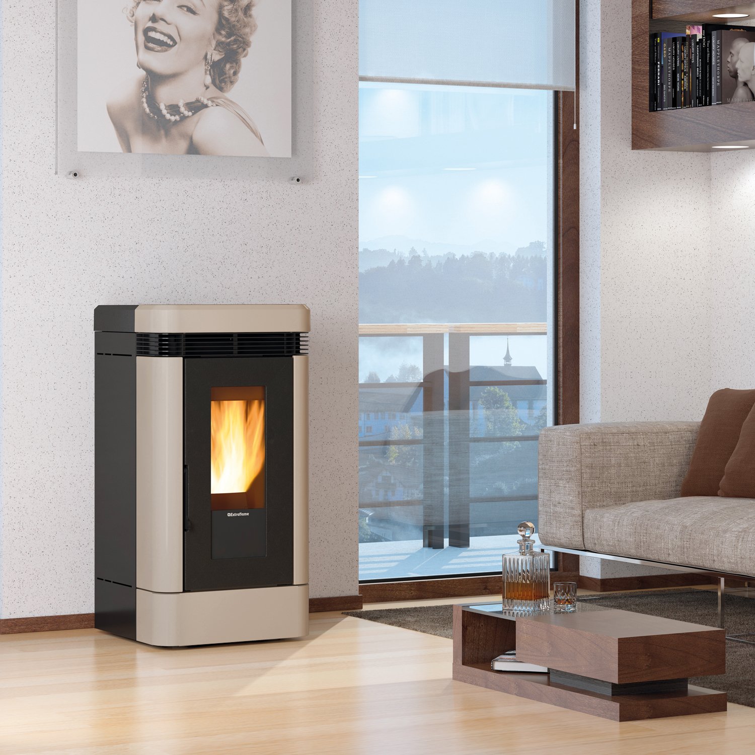 Der Pelletofen Lucia von Extraflame kombiniert moderne Heiztechnologie mit exklusivem Design. Mit seiner Nennwärmeleistung von 12,1 kW und einem Wirkungsgrad von 92,5 % eignet er sich perfekt zur Beheizung von Räumen bis 347 m³. Die hochwertige Keramikverkleidung in Cremeweiß macht ihn zu einem eleganten Blickfang, der jedes Wohnzimmer optisch aufwertet.