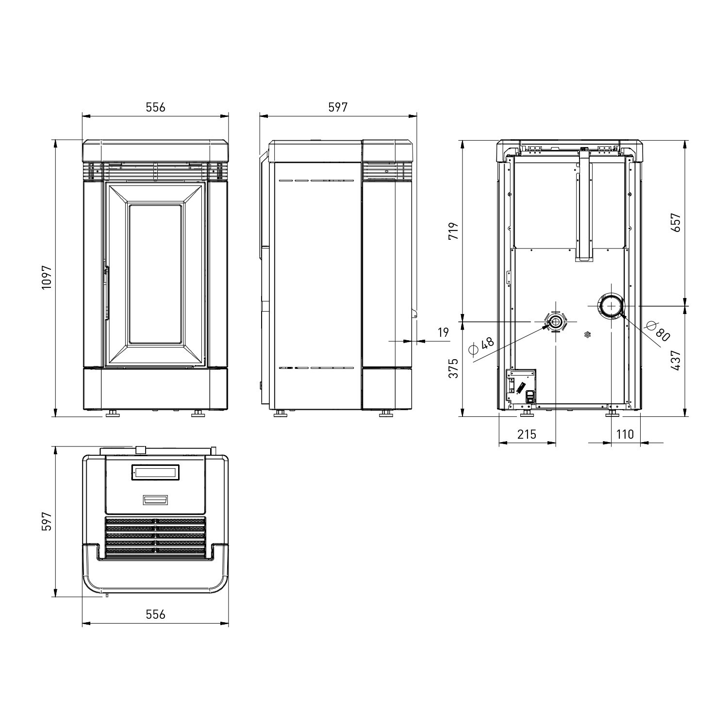 Rauchrohranschluss: 80 mm (hinten)