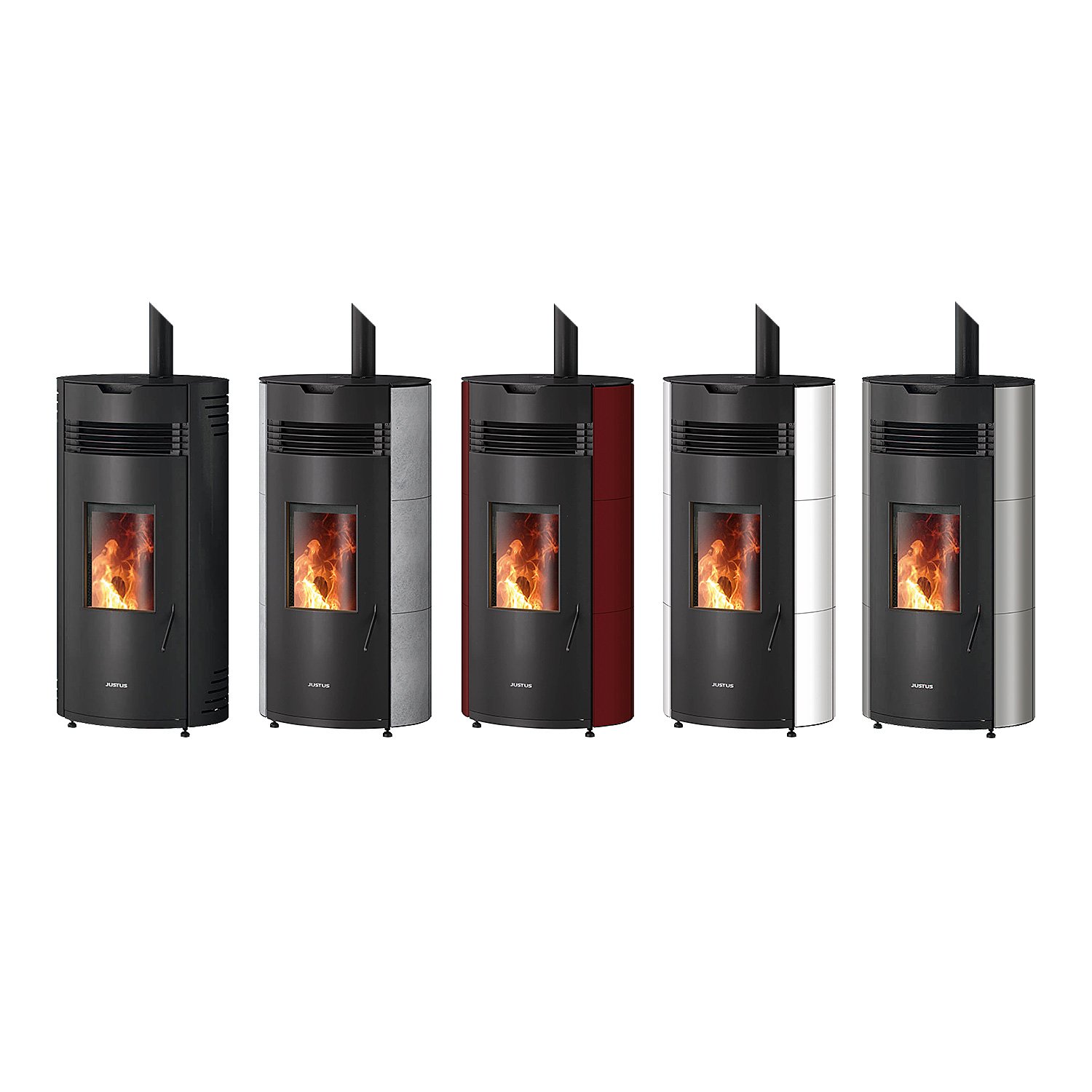 Der Justus Pelletofen Norta kombiniert zeitloses Design mit innovativer Heiztechnik – ideal für moderne Wohnräume, die effizient und komfortabel beheizt werden sollen. Seine runde Form, das rechteckige Sichtfenster und der robuste Stahlkorpus machen ihn zu einem echten Blickfang. Die Seitenverkleidung ist in mehreren hochwertigen Ausführungen erhältlich: Schwarz, Bordeauxrot, Taupe, Seidenweiß sowie Speckstein für eine natürliche Steinoptik.