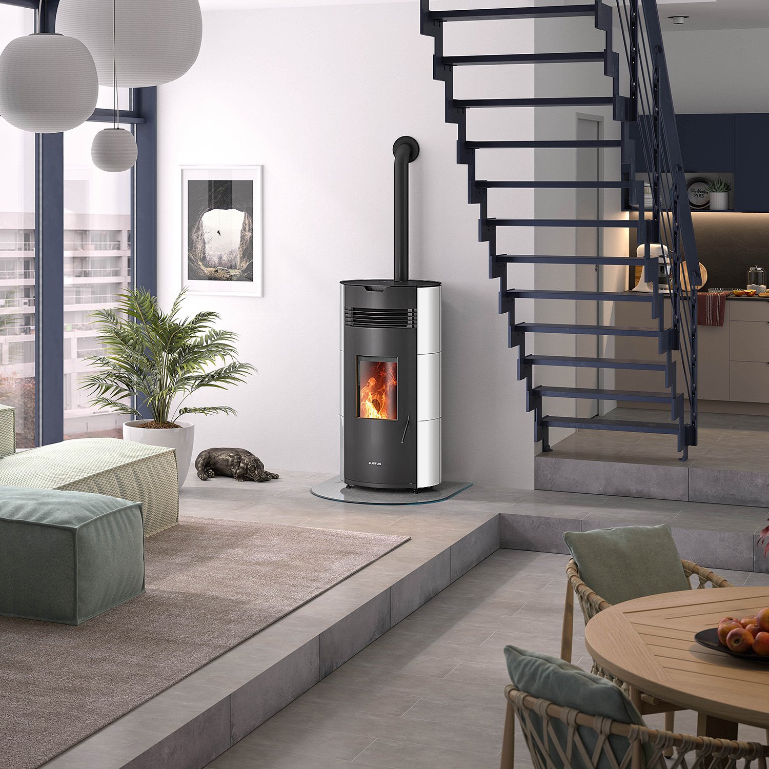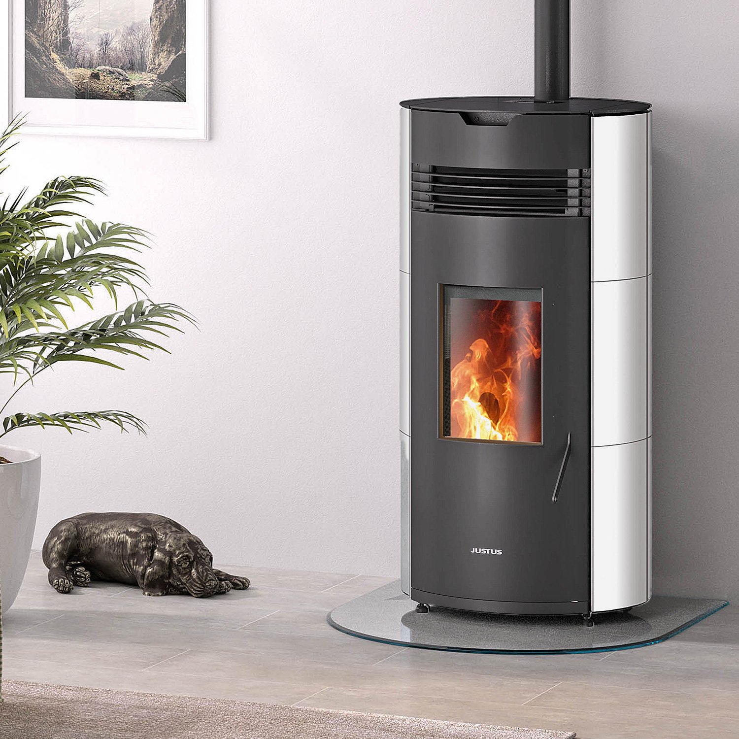 Pelletofen Justus Norta 8 kW – moderne Rundform, SmartCON-Steuerung & automatische Reinigung