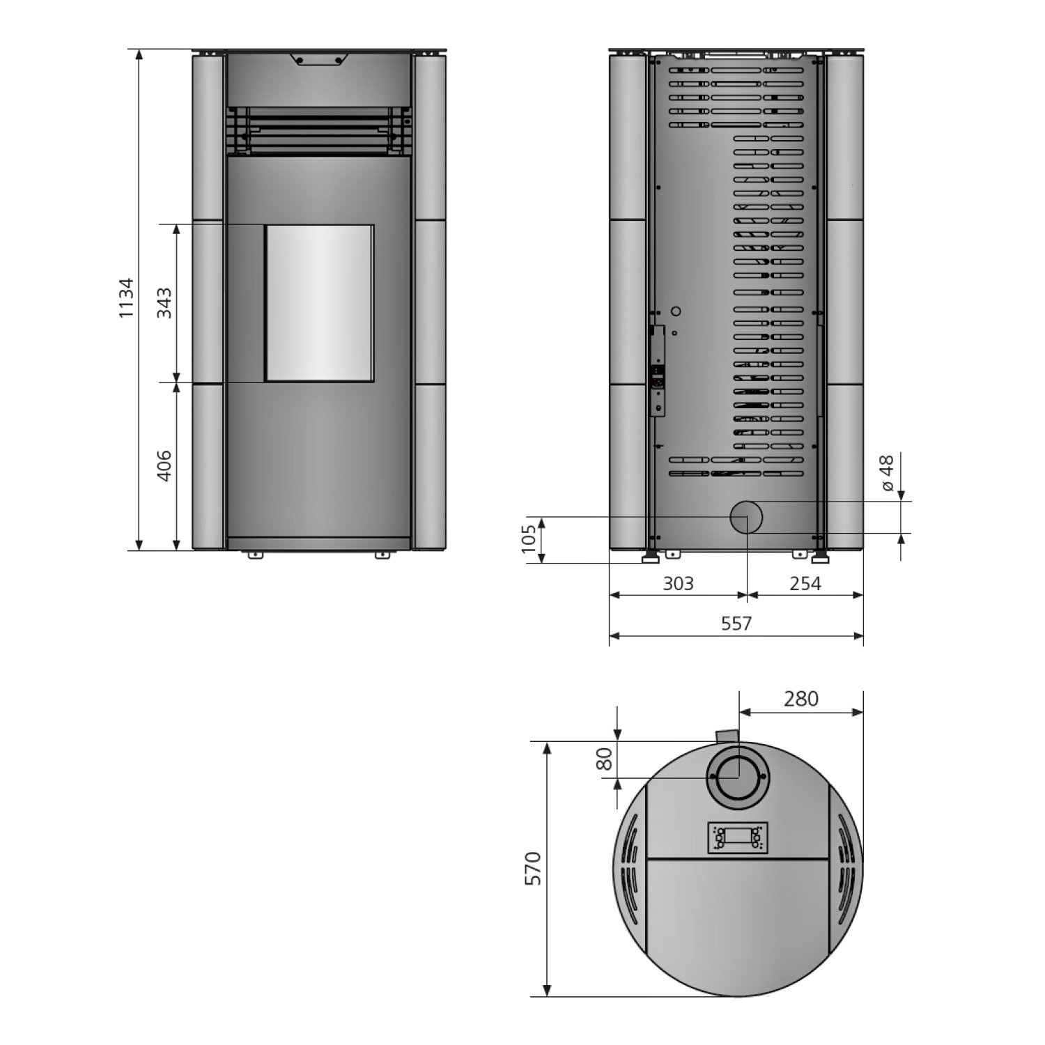 Rauchrohranschluss: Ø 80 mm, oben
