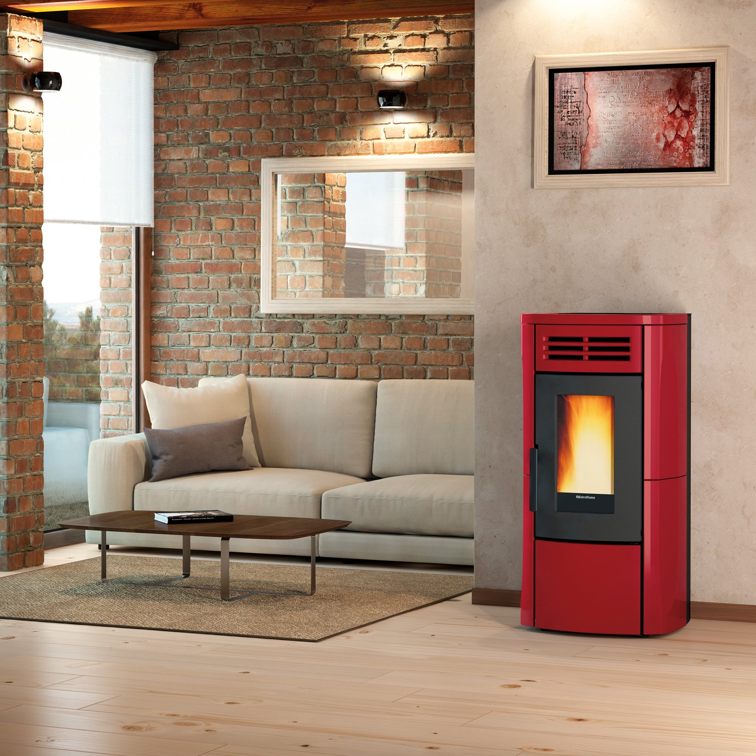 Extraflame Pelletofen Terry Plus – 12 kW, Majolika-Keramik, Doppelkanalisierung & leiser Betrieb