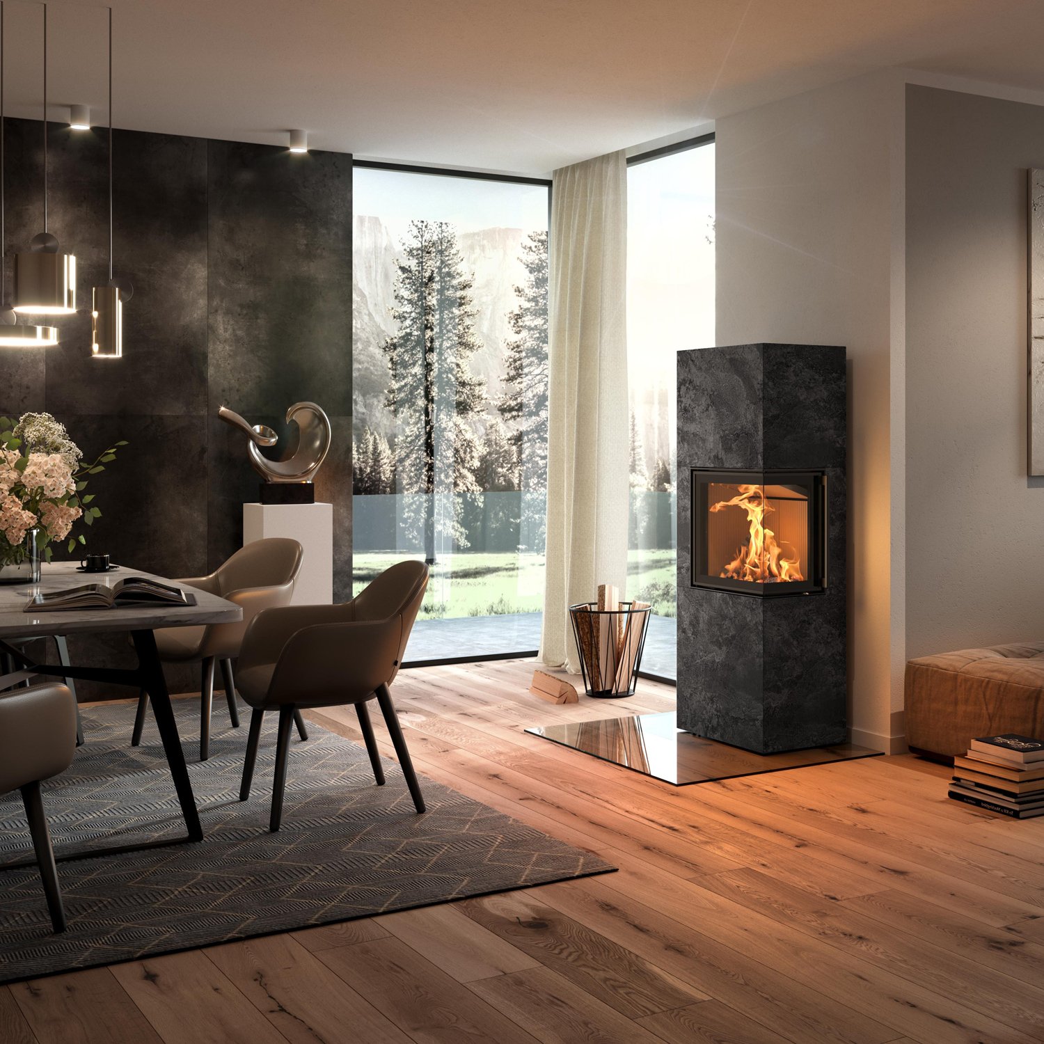 Spartherm Lungo 2R Kaminofen – 6 kW | Eck-Kaminofen mit Panorama-Sicht & variablen Anschlüssen