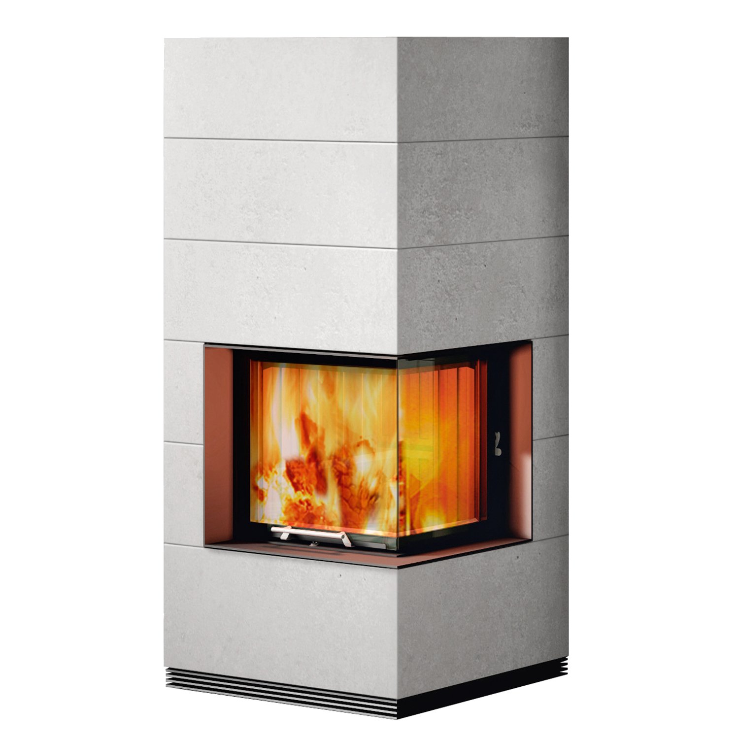 Die über Eck verlaufende Sichtscheibe bietet Ihnen ein beeindruckendes Flammenpanorama aus mehreren Perspektiven und macht den Kamin zum stilvollen Mittelpunkt des Wohnraums. Die hochschiebbare Tür ermöglicht komfortables Nachlegen ohne Schwenkradius – ideal für enge oder designorientierte Installationen.