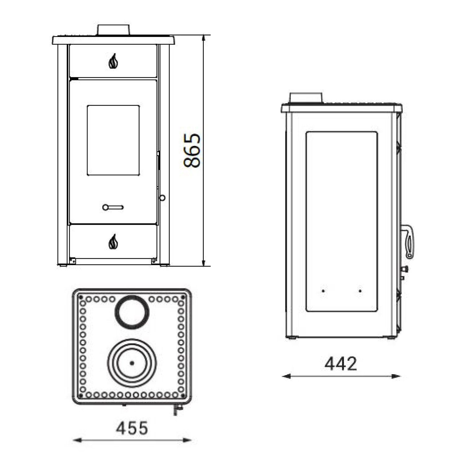 ✔ Oben liegender Rauchrohranschluss (Ø 120 mm)