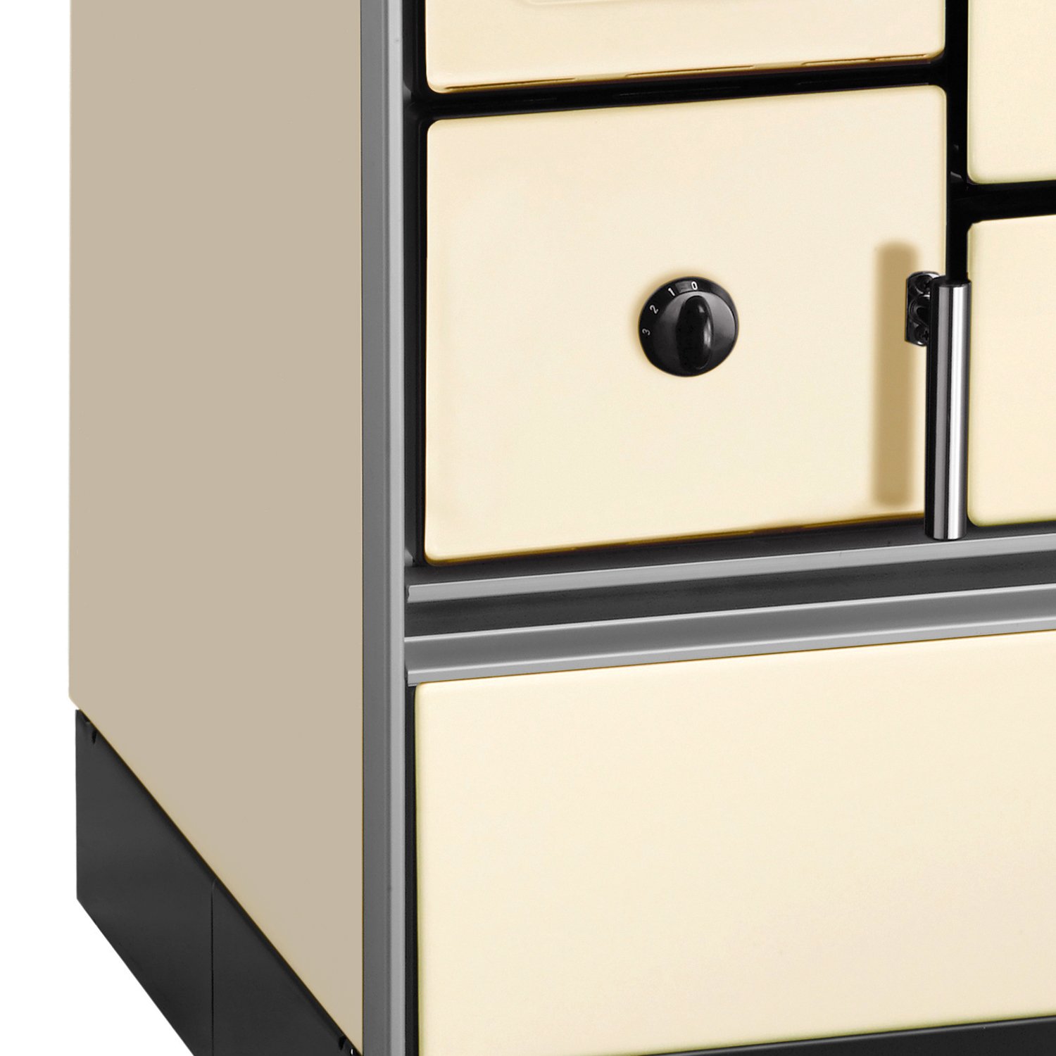 Für maximale Flexibilität ist der Küchenherd mit drei Rauchrohranschlüssen ausgestattet: oben, hinten und seitlich. Über das Varianten-Menü können Sie wählen, ob das Backfach links oder rechts eingebaut sein soll. Die robuste Emaille-Verkleidung in Beige ist hitzebeständig, pflegeleicht und harmoniert ideal mit klassischen und modernen Küchen.