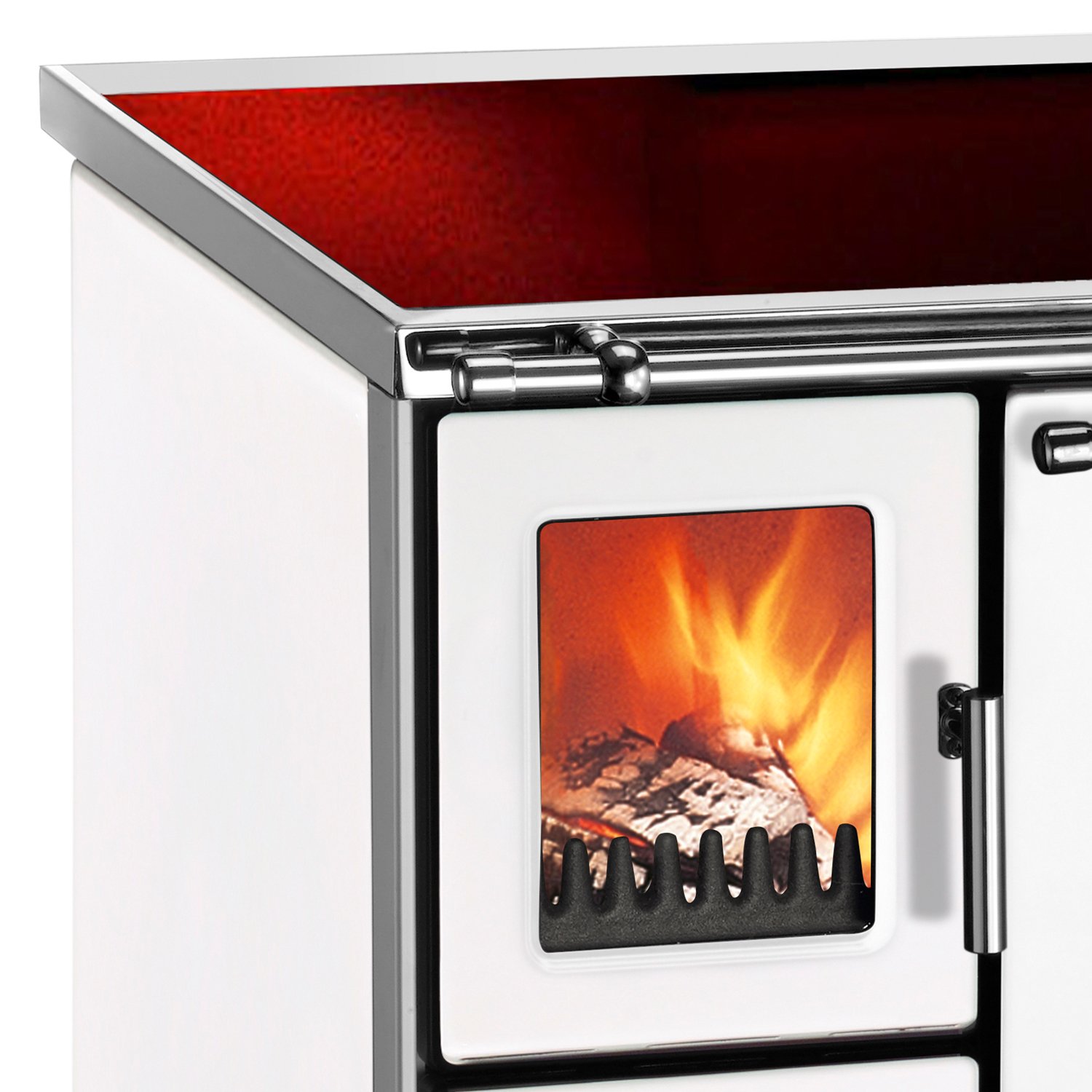 Für eine besonders gemütliche Stimmung sorgt der Feuerraum mit Sichtfenster, der einen klaren Blick auf die lodernden Flammen ermöglicht. Das geräumige Backfach verfügt über eine Doppelverglasung und ein integriertes Thermometer, sodass Sie jederzeit die Backtemperatur perfekt im Blick behalten.