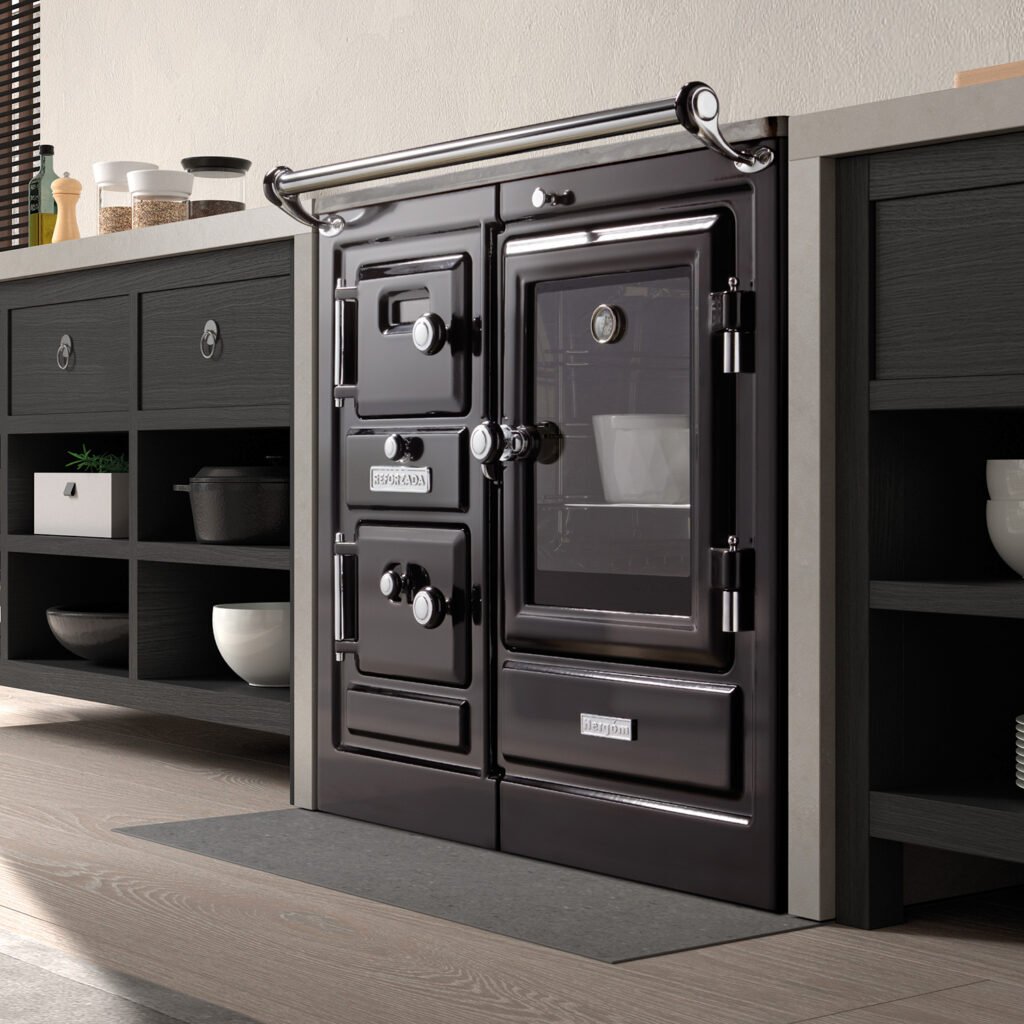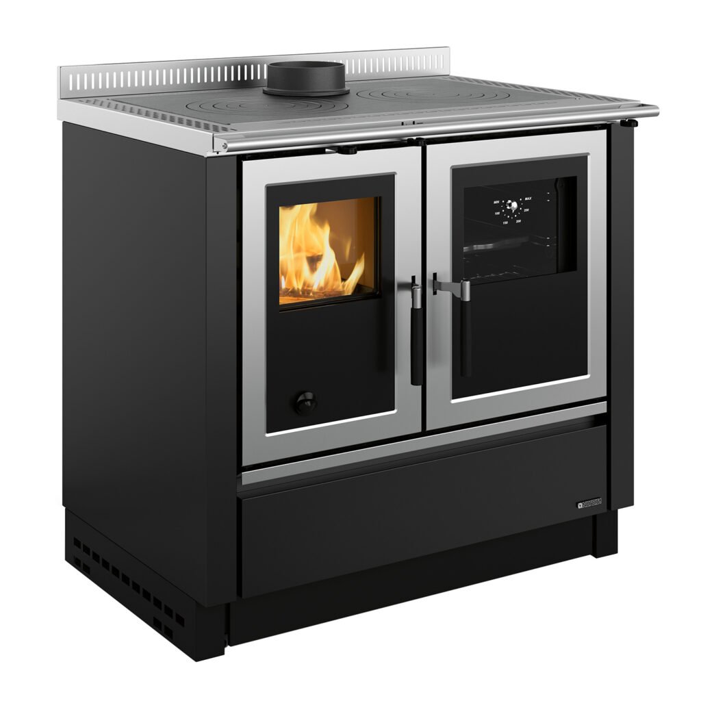 La Nordica Alaska 16 Küchenofen – 12 kW Holzherd mit großem Backofen & schwarzer Glasfront