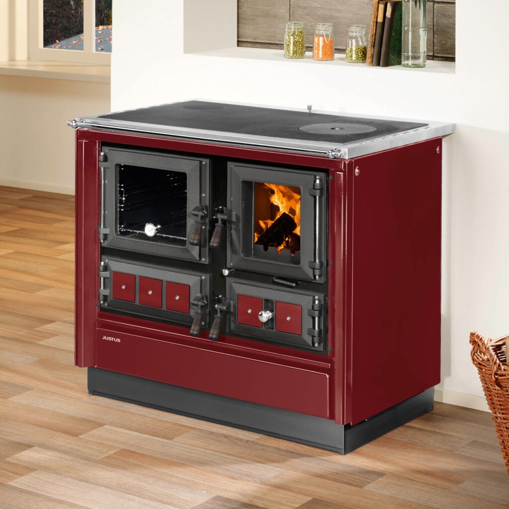 Justus Küchenofen Rustico-90 2.0 Rot – 7 kW Holzherd mit Backfach & Stahlverkleidung