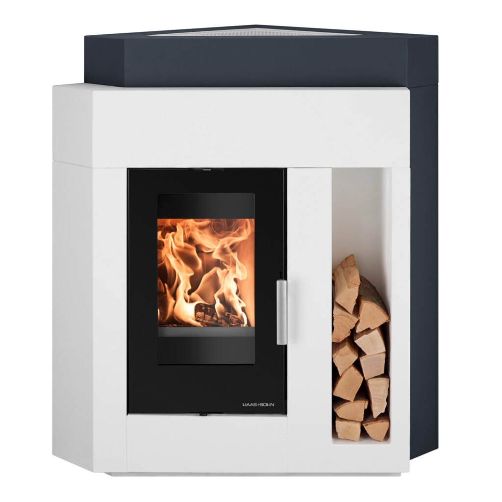 Haas+Sohn Kaminbausatz Pinus II Eck – 8 kW | Kompakter Eck-Kamin mit Wärmespeicherbeton